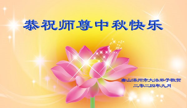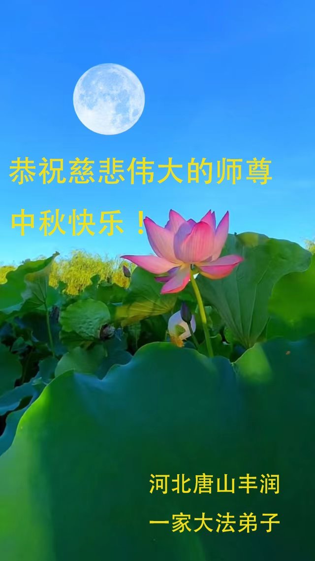 恭祝慈悲伟大的师尊中秋快乐! 每逢佳节倍思亲,弟子思念师尊,盼望师尊早日回国,弟子能亲见师尊!感谢师尊的慈悲苦度!弟子将继续努力做好三件事,救度更多的众生! 河北省唐山市丰润区一讲真相小组全体大法弟子敬上 河北唐山大法弟子恭祝师尊中秋快乐!