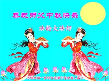 恭祝慈悲伟大的师尊中秋快乐! 天津武清河北屯镇全体大法弟子敬上 天津武清下伍旗镇全体大法弟子恭祝慈悲伟大的师尊中秋快乐!