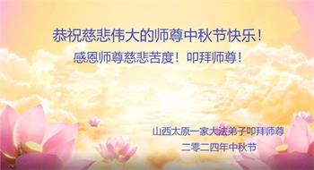 山西太原一家大法弟子恭祝慈悲伟大的师尊中秋节快乐!