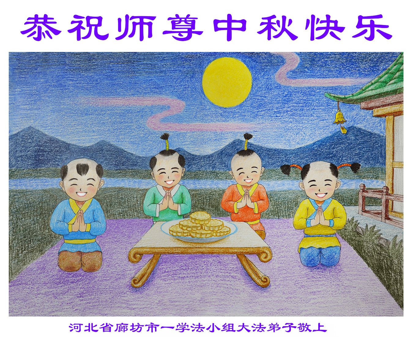 法轮大法好、真善忍好!感恩师父慈悲! 河北廊坊燕郊大法弟子家属敬上 河北省廊坊市六人学法组大法弟子恭祝师尊中秋节快乐!