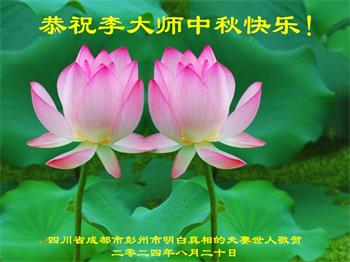四川彭州三名大法弟子及家人敬上 四川省成都大法弟子恭祝师父中秋快乐!
