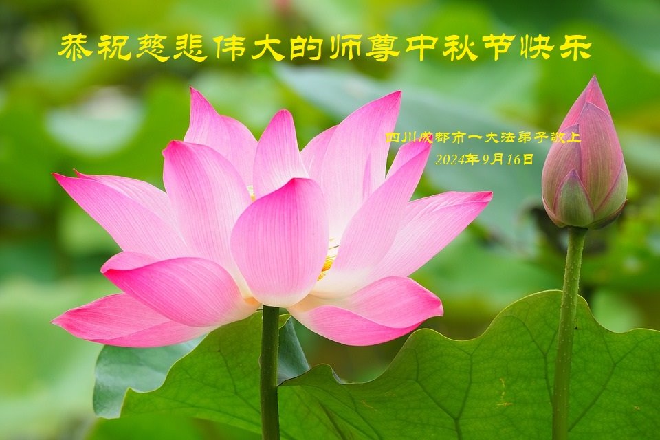 弟子谨遵师父教诲,坚修大法,好好实修,以法为师,做好三件事,不辱使命,救度众生,随师还! 四川省成都市彭州市大法弟子及全家恭祝师父中秋快乐!