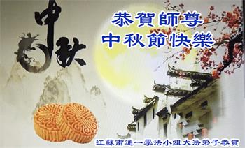 一年一度的中秋佳节到了,恭祝师尊中秋快乐!能得遇大法、成为大法的一份子,弟子们无比感恩!弟子们一定更加精進,努力做好三件事,助师正法,跟师父回家! 江苏省南通一学法小组大法弟子敬上 江苏盐城大法弟子恭祝师父中秋节快乐!