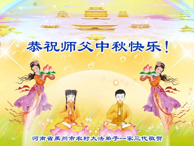 感恩师父慈悲救度!师父辛苦了!谢谢师父! 在今后的修炼中,弟子要做好三件事,助师正法,完成使命,兑现誓约,跟师父回家。 河南省周口市大法弟子一家恭祝师尊中秋快乐!