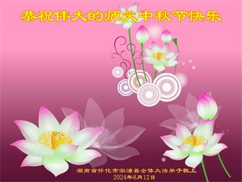 我们无限感恩师尊的救度之恩! 湖南省株洲市大法弟子敬上 湖南省岳阳市华容县一大法弟子恭祝师尊中秋节快乐!