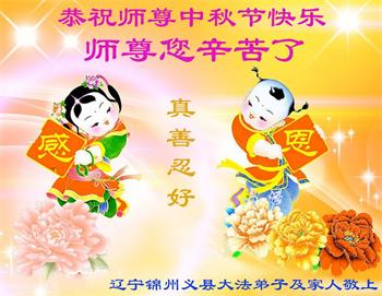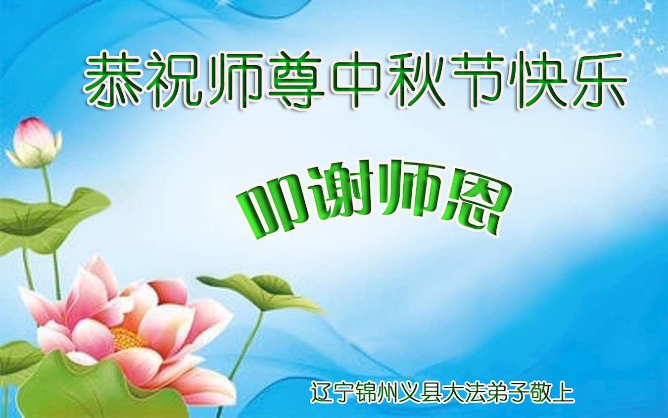 师父您辛苦了!大法弟子们经历了中共二十五年的残酷迫害中,弟子们深知在艰难恐怖的环境里,时刻离不开师尊的慈悲保护与救度,弟子们才能够走到今天。弟子们用尽人类的语言也无法表达对师尊的无限感恩!唯有精進做好师尊交给的三件事,在修好自己的同时,救度被中共谎言迷惑的可贵的中国人。惟愿师尊笑。叩拜恩师! 辽宁省锦州市母女大法弟子恭祝师尊中秋快乐!