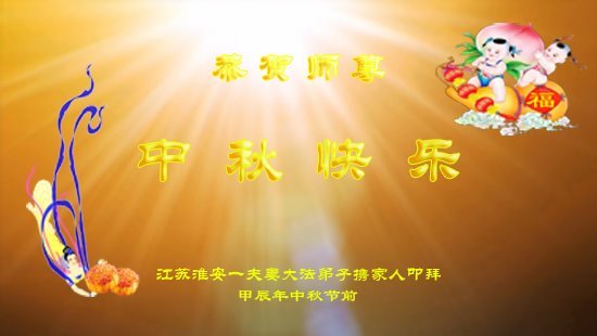 恭祝师尊中秋快乐! 江苏淮安一夫妻大法弟子携家人叩拜 甲辰年中秋节前 江苏省淮安市涟水县全体大法弟子恭祝慈悲伟大的师尊中秋快乐!