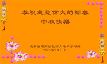 【明慧网二零二四年九月十八日】 辽宁省沈阳高校教师大法弟子恭祝慈悲伟大的师尊中秋快乐!