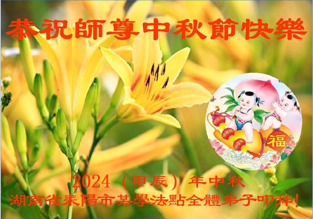师父辛苦了! 弟子们一定精進实修,做好三件事。 湖南省邵阳市全体大法弟子敬上 湖南科技大学大法弟子恭祝师父中秋节快乐!