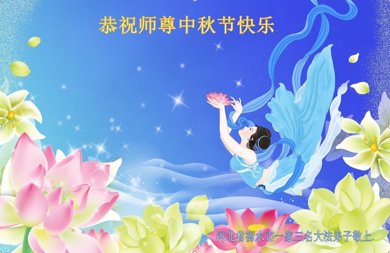 衡水市一家三名大法弟子恭祝师尊中秋快乐! 河北沧州市泊头市一学法小组全体成员恭祝慈悲伟大的师尊中秋节快乐!