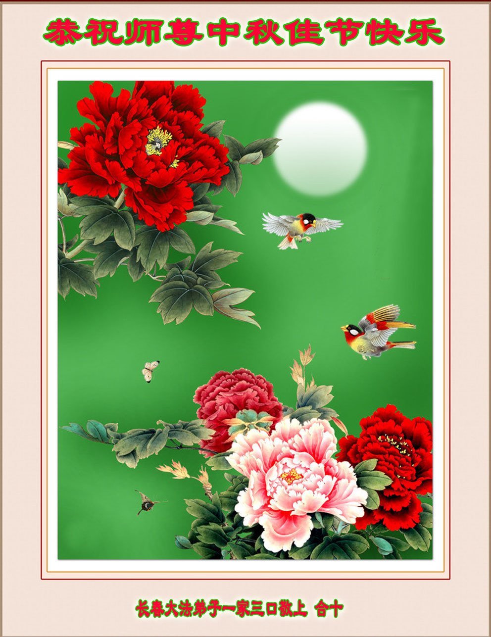 弟子恭祝师尊中秋快乐!感恩师尊慈悲救度,弟子一定听师尊的话,做好三件事,随师回家。 长春市一学法小组大法弟子 吉林省长春市一家三口大法弟子及家属恭祝师尊中秋快乐!