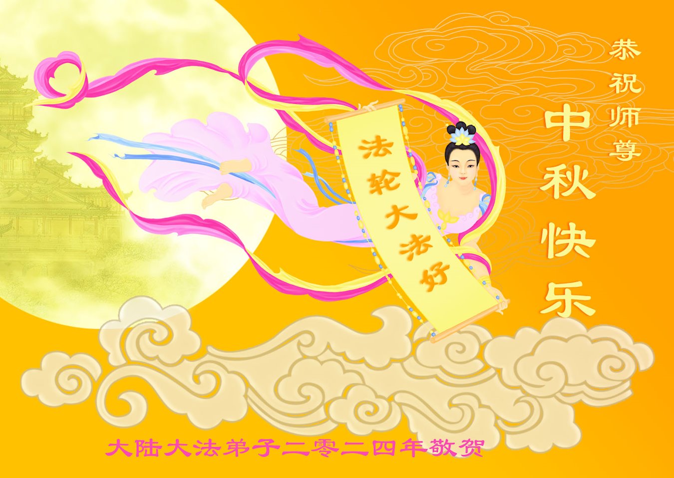 在此二零二四年中秋节之际,弟子怀着无比恭敬的心情,恭祝师尊中秋节快乐!谢谢师尊的慈悲苦度! 中国大陆一大法弟子叩首 2024年9月7日 中国大陆一大法弟子恭祝师尊中秋节快乐!