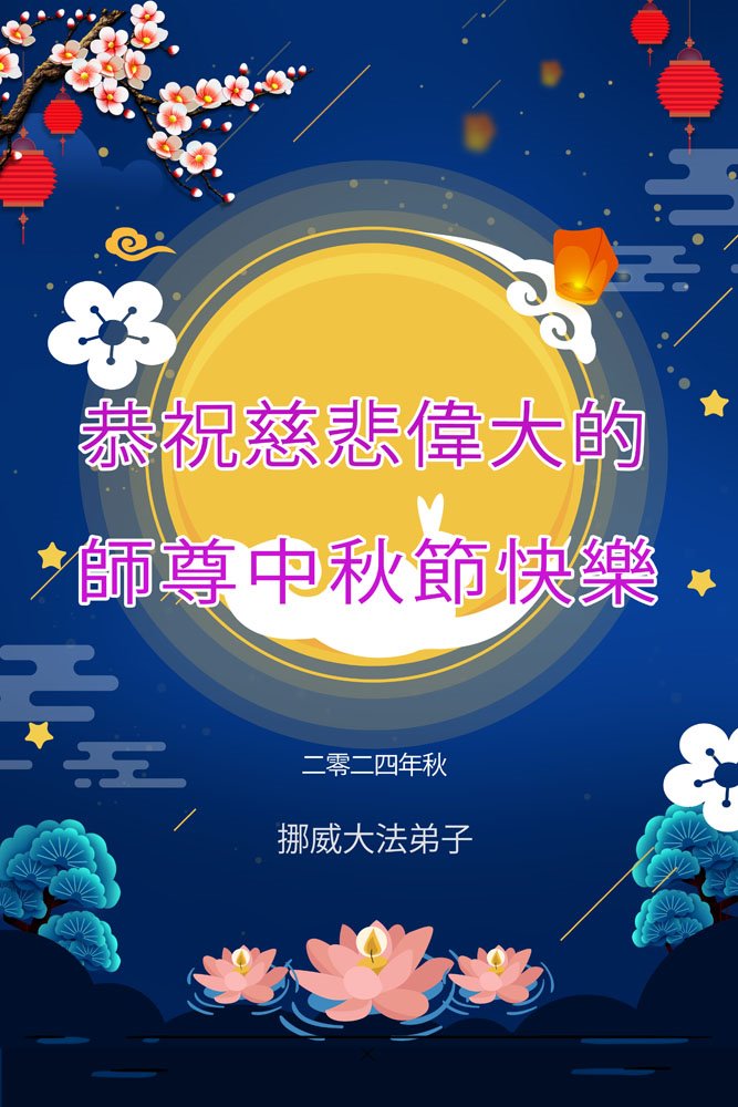 感恩师尊的救度!感恩伟大慈悲的师尊为弟子们的承受!弟子要快点精進实修,跟上正法進程,兑现誓约!跟师父一起回家。 挪威全体大法弟子恭祝师尊中秋节快乐!