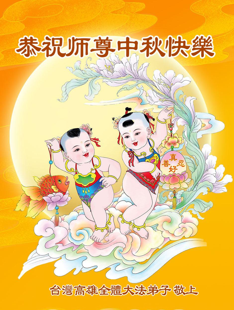 感恩师尊慈悲救度!师父辛苦了!我们会做好三件事,不让师尊操心,修好心性,在法上提高,随师父回家。 台湾高雄全体大法弟子恭祝师尊中秋快乐!