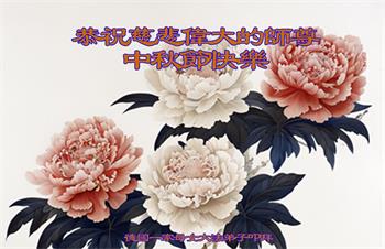 尊敬的师父您好, 值此中秋佳节之际,祝您中秋节快乐!人月两团圆! 弟子正在迎头赶上做好三件事,去掉敷衍糊弄事的党文化,下决心用心救人。 英国伦敦青年大法弟子敬上 英国伦敦唐人街大法弟子恭祝师父中秋节快乐!
