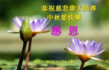 感恩师尊对世人众生慈悲救度!师父您辛苦了!感恩无尽言!叩拜师尊! 广州三个大法弟子及家人敬上 广东茂名大法弟子恭祝师尊中秋节快乐!