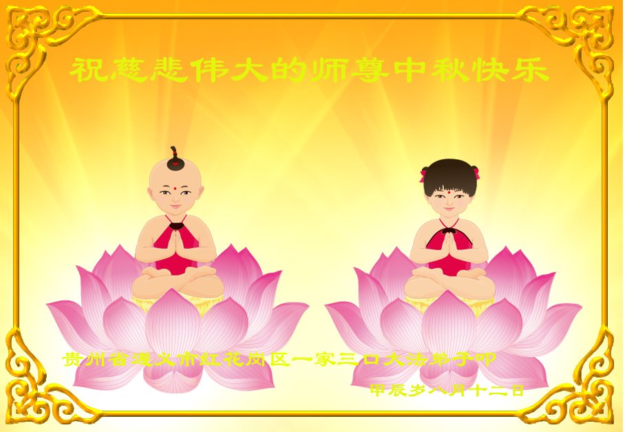 弟子希望做好该做的!不辜负师父的慈悲救度! 贵州省遵义市红花岗区一家三口大法弟子恭祝师尊中秋快乐!