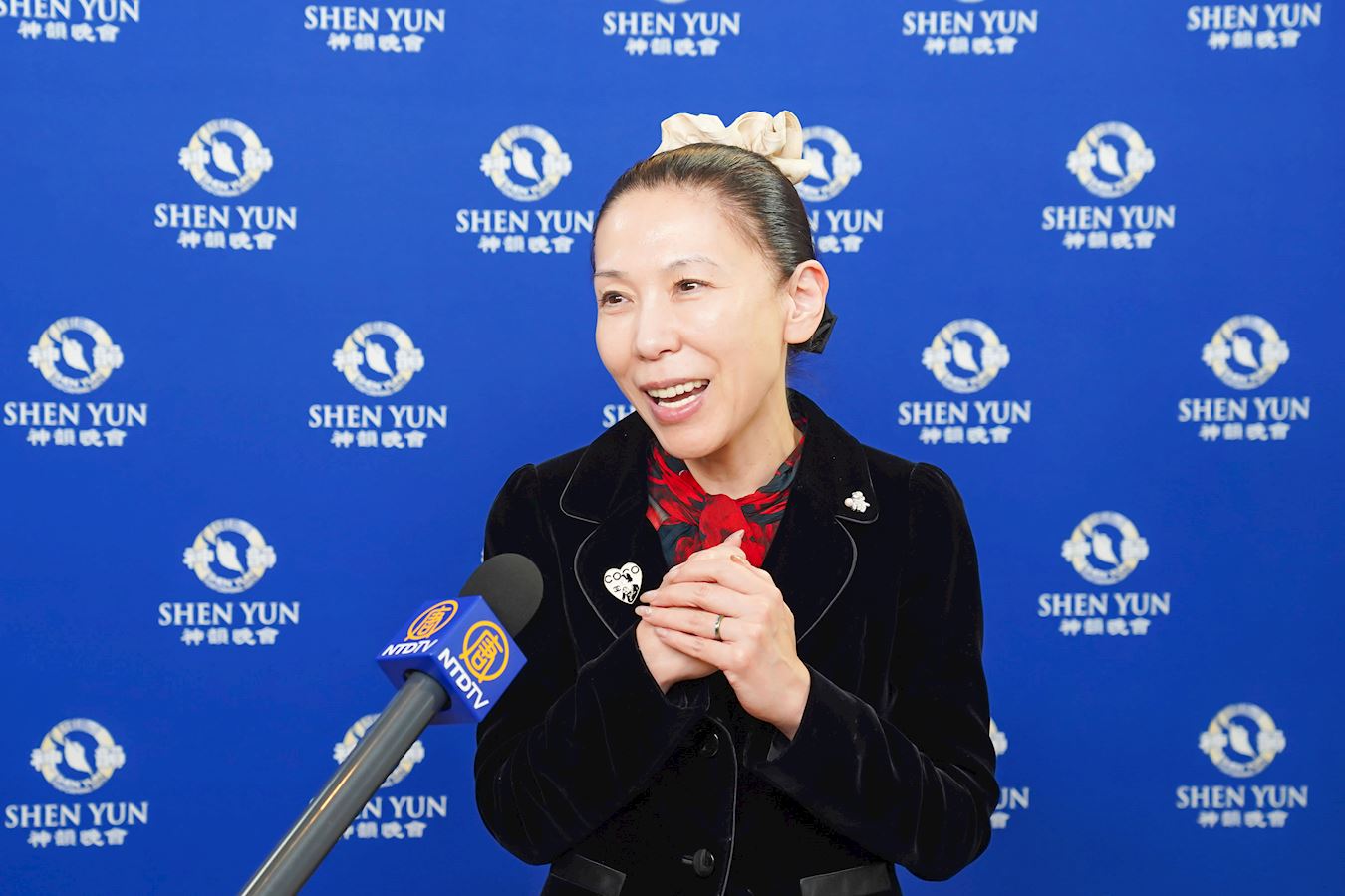 西出博子(Nishide Hiroko)期待三年,终于如愿观赏神韵:“真是太感动了!一开始就感动得流泪。看到这些每天不懈努力的演员的艺术,努力、努力、再努力,日复一日的努力在舞台上绽放出光芒,我觉得非常了不起!” 西出博子现任HIROKO MANNER集团总裁,是日本知名的礼仪培训师,为300多家知名企业提供指导,培训人才超10万名。她活跃在电视、报纸、杂志等各种媒体上,为著名女演员、艺人、政治家、医生等提供全面礼仪指导。 “(第一个节目)看到神佛,还有人自然生存的方式。我们真的从神那里获得了很多的爱,演出让我再次感受到这一点。”她说,“当今世界,这个舞台真的能拯救人类。人类被拯救后,动植物甚至大自然也会被拯救。真的希望地球乃至宇宙通过这次演出能够恢复原来美好的面目。” 西出博子感佩神韵艺术家们复兴五千年神传文化的努力:“中国的传统历史非常了不起,从数千年前传承下来的中国传统文化至今仍不褪色,仍然鲜活。现在我重新感受到她的吸引力。”“因为她是真正的东西。无论时代如何变迁,真正的东西是不会改变的。” 服装公司主管观神韵:真善忍信念令人受益 .纪.元;)'> 图8:二零二五年一月十九日下午,知名服装公司主管宫泽爱(Miyazawa Ai)观赏了神韵环球艺术团在日本东京涩谷公会堂(LINE CUBE SHIBUYA)的第三场演出。(大.纪.元;) |
