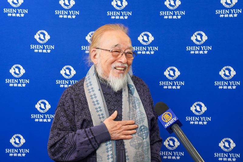 在演艺界耕耘超过35年的山中贤一(Yamanaka Kenichi)对神韵赞不绝口,“演出真是壮观啊。每个演员的技艺都很出色,形成整体后更加出色。音乐和背景天幕在时间上的配合天衣无缝。” 他说, “演出的节奏掌控极为出色,音乐的配合亦是如此,一切都很完美。节目没有台词,单用舞蹈来呈现,但我们却能理解其中的内容,这一切归功于整台演出的功力。当然演员表现力也很强,但正因为有了这样的制作,才让我们明白其中的意义。” “所有从事娱乐行业的人都应该来观赏次神韵演出,她会让你精神振奋,也可以从神韵的技艺和演出方式中学习。”山中贤一还从神韵音乐中感受到了德音雅乐的疗效,“当时身体很轻松,也感到获得了能量,明天我可以更加努力。” 山中贤一还从演出中感悟到:“中国自古就有许多神明,日本也是如此,这是能产生共鸣,也能令人惊叹的。是神创造了人类,我们能够观赏到这样的演出是一种幸福。” 知名演员:非常认同神韵传递的信息 .纪.元;)'> 图10:二零二五年一月十八日晚上,日本家喻户晓的演员、83岁的横内正(Yokouchi Tadashi)观赏了神韵环球艺术团在日本东京涩谷公会堂(LINE CUBE SHIBUYA)举行的第二场演出。(大.纪.元;) |