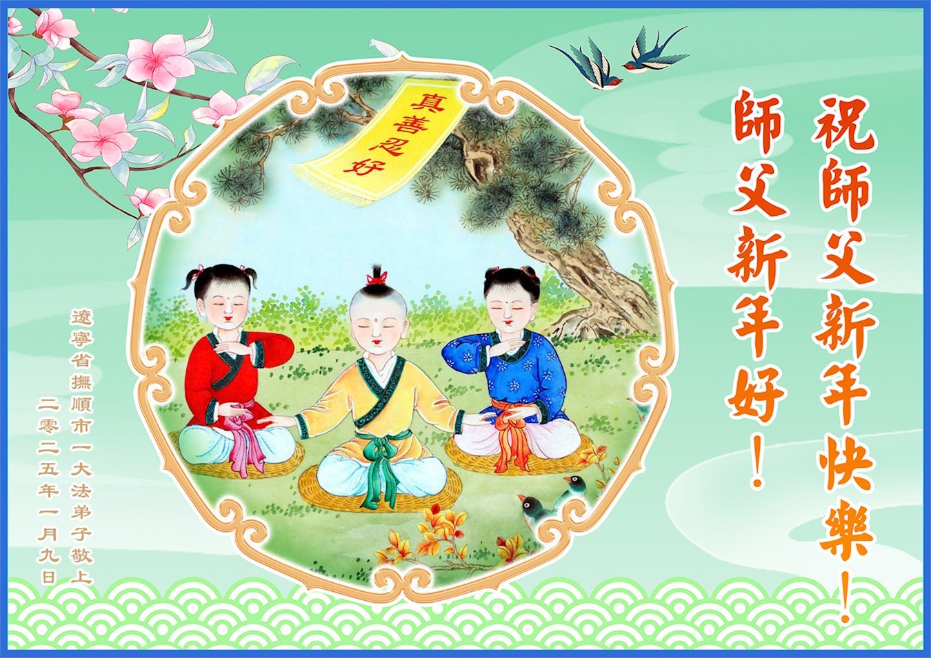 向慈悲伟大的师尊拜年!恭祝师父过年好! 感恩师尊的慈悲苦度!师父辛苦了!感恩师尊为救度弟子与无量众生而付出一切,谢谢师父!弟子们在遥远的中国东北拜谢师尊洪恩! 辽宁省抚顺市一大法弟子敬上 二零二五年一月九日 辽宁省抚顺市新宾县一大法弟子及全家恭祝师尊新年快乐!