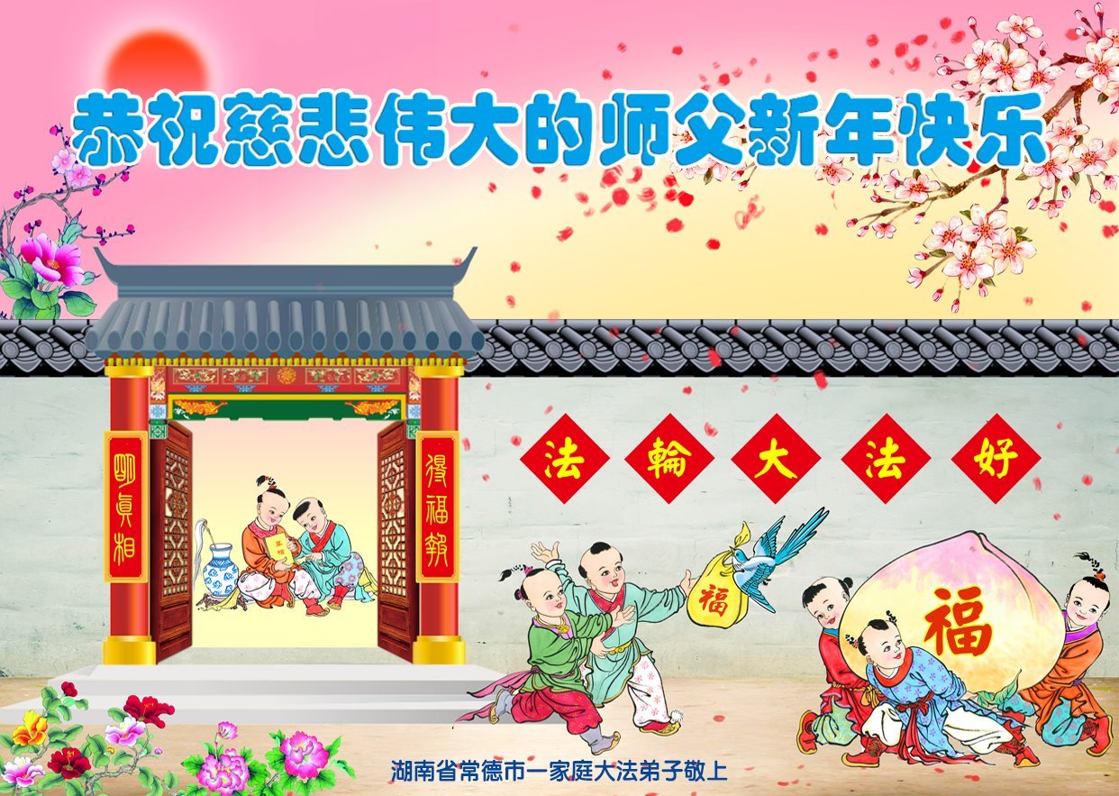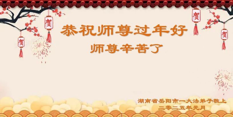 恭祝师父新年好!弟子给师父拜年了! 湖南省常德市一家庭大法弟子敬上 湖南省邵阳大法弟子恭祝师父新年好!