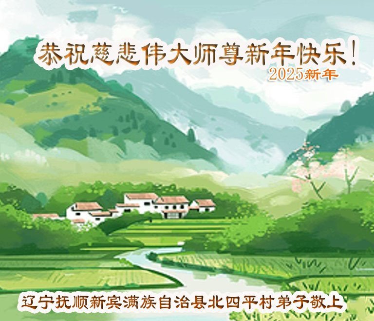 辽宁抚顺新宾北四平村大法弟子恭祝师尊新年快乐!