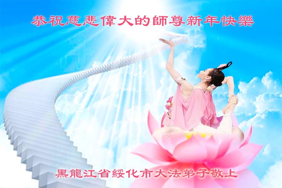 恭祝伟大的师尊新年好!感恩师尊慈悲救度! 黑龙江省绥化市一老年大法弟子敬上 黑龙江省绥化市—大法弟子的外孙恭祝师父新年好!