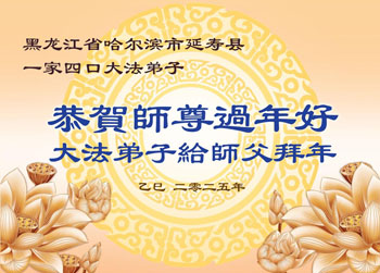 感恩师父慈悲救度!谢谢师父慈悲看护!师父您辛苦了! 黑龙江省哈尔滨市延寿县一家四口大法弟子恭祝师尊过年好!