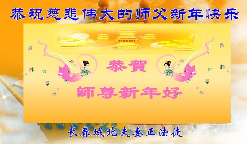 助师正法天地行 正念正行除邪灵 救度众生史前愿 再随师父回祖庭 吉林省长春城北夫妻大法弟子恭祝慈悲伟大的师父新年快乐!