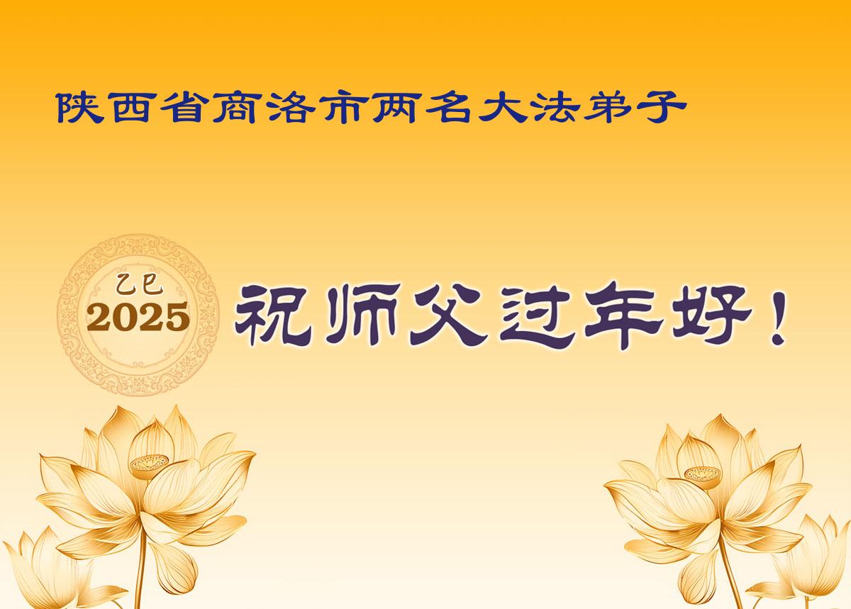 恭祝师父新年快乐!师父过年好! 陕西省富平县全体大法弟子敬上 二零二五年一月十八日 陕西省商洛两名大法弟子恭祝师尊新年快乐!