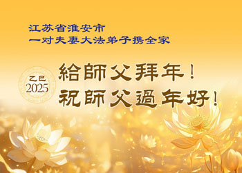 感恩师父传大法救度我们。谢谢师父! 江苏省淮安市一家多位大法弟子敬上 二零二五年一月十七日 江苏省淮安市一对夫妻大法弟子携全家恭祝师父过年好!