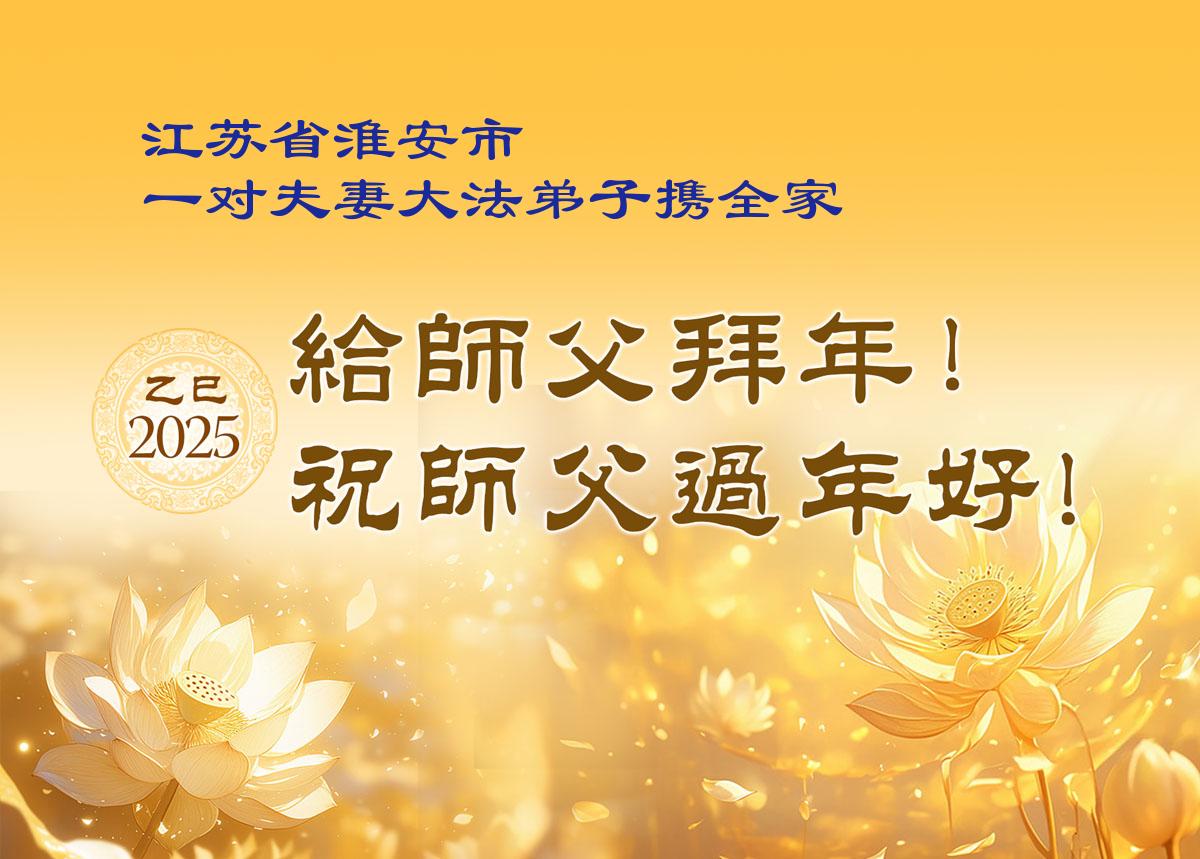 恭祝慈悲伟大的师父新年好! 江苏省淮安市两名大法弟子敬上 二零二五年一月十七日 江苏省淮安市大法弟子携全家恭祝师父新年好!