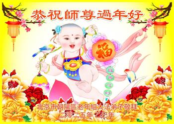 恭祝慈悲伟大的师尊过年好! 北京市朝阳区老年学法小组大法弟子敬上 北京一大法弟子全家恭祝师尊过年好!弟子全家给师尊拜年!