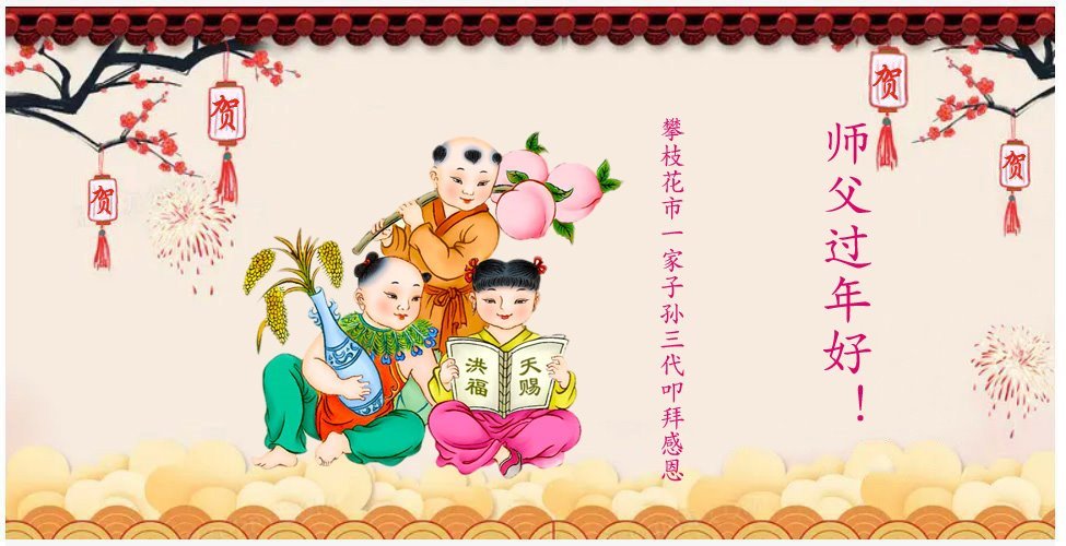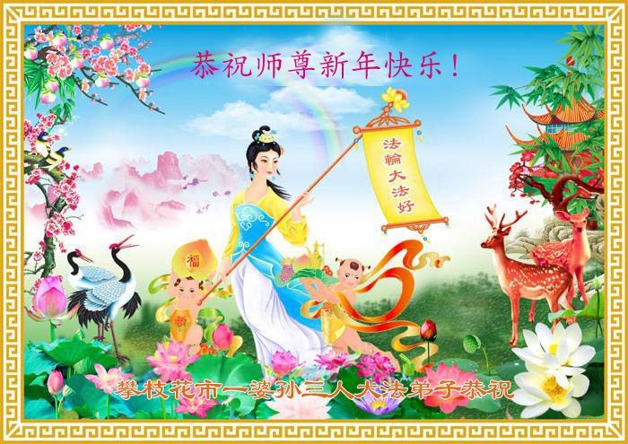 恭祝师尊乙巳年新年快乐! 四川省遂宁市夫妻大法弟子全家敬上 二零二五年一月十七日 四川省攀枝花市一大法弟子婆孙三人恭祝师尊过年好!