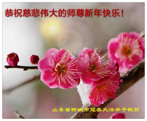 恭祝慈悲伟大的师尊新年快乐! 在新的一年里,弟子要努力履行誓约,走好修炼路,学法修心,多救人,助师正法,共建新家园。 山东省聊城市冠县大法弟子敬上 山东省汶上县一夫妇大法弟子恭祝师父新年快乐!