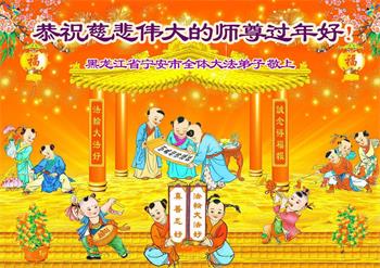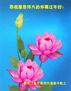 恭祝师尊新年好!恭祝师尊新年快乐!谢谢师尊慈悲苦度!弟子跪拜师尊! 黑龙江省宁安市大法弟子敬上 黑龙江省牡丹江市宁安市全体大法弟子恭祝慈悲伟大的师尊过年好!