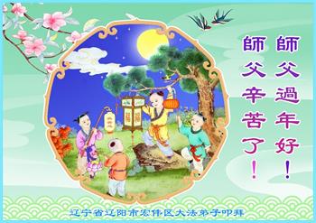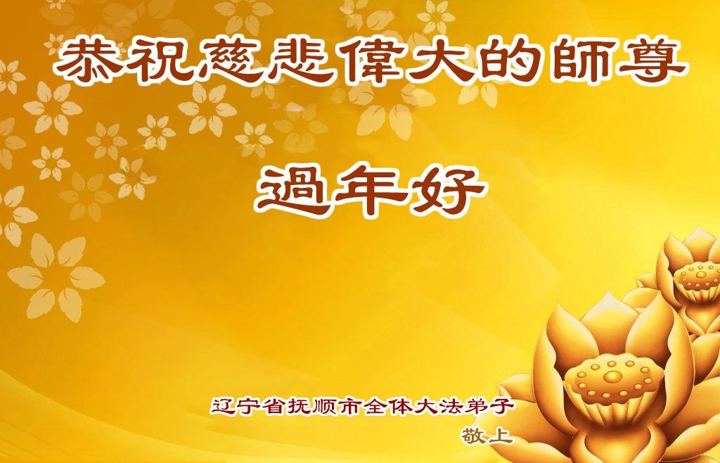 师父您辛苦了,您用您的巨大承受为大法弟子延长了修炼时间,关心我们每个弟子,怕我们掉队。这样的师父到哪去找。感恩的话总是说不完的。我修炼二十多年了,在大法的熔炼中,无论形势怎么险恶,弟子永远坚信师父坚信大法,紧紧跟随师父! 辽宁抚顺大法弟子敬上 辽宁省抚顺市全体大法弟子恭祝慈悲伟大的师尊过年好!