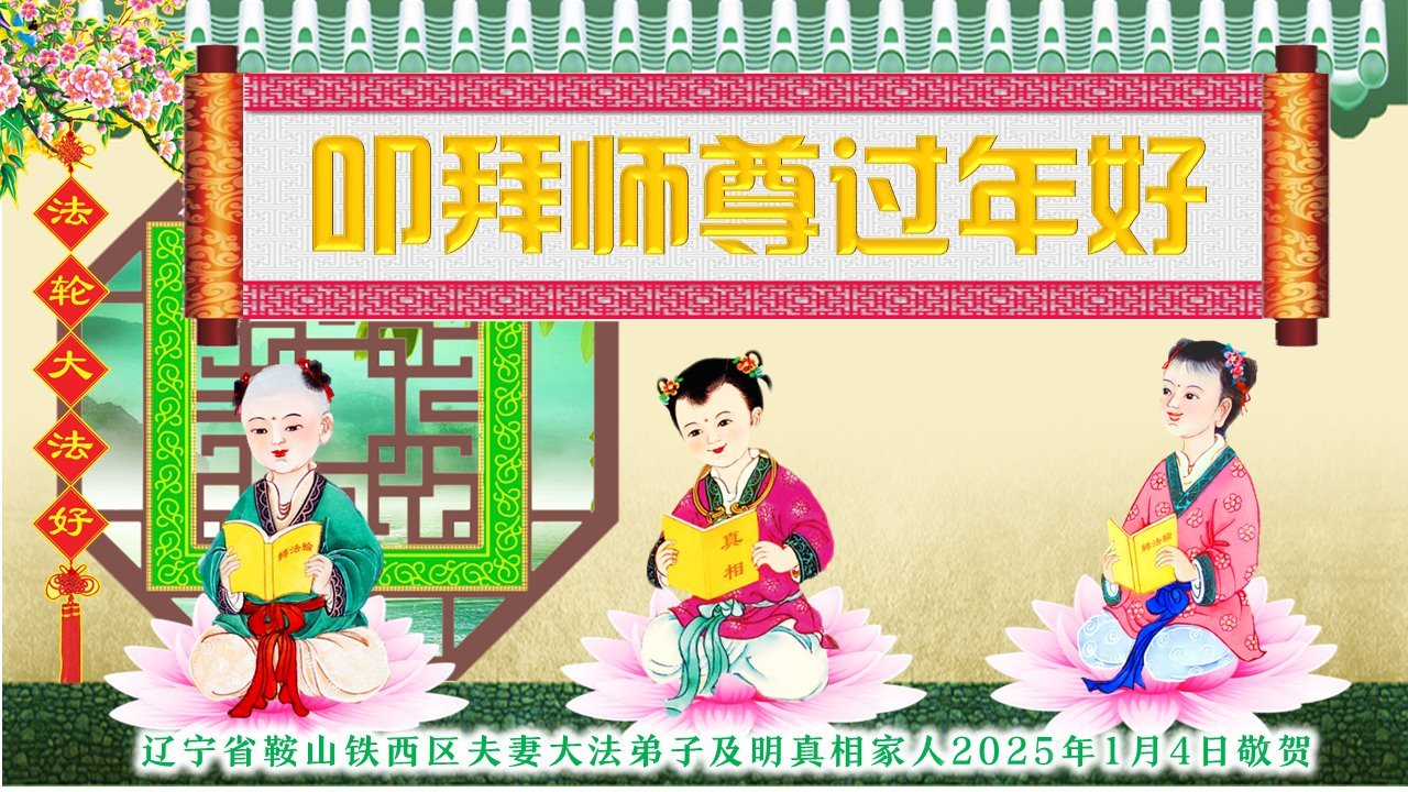 恭祝慈悲伟大的师尊过年好! 辽宁省鞍山铁西区姐妹大法弟子敬上 辽宁省鞍山铁西区夫妻大法弟子及明真相家人恭祝慈悲伟大的师尊过年好!