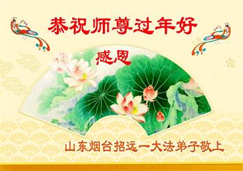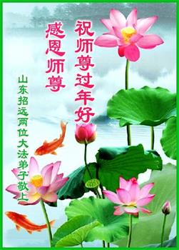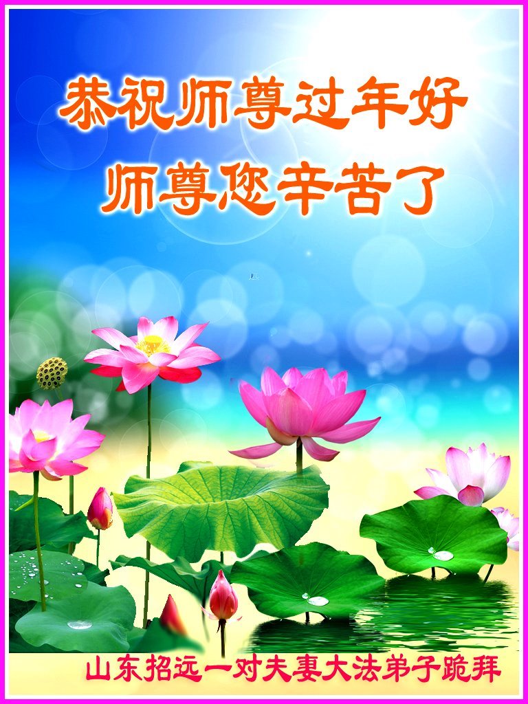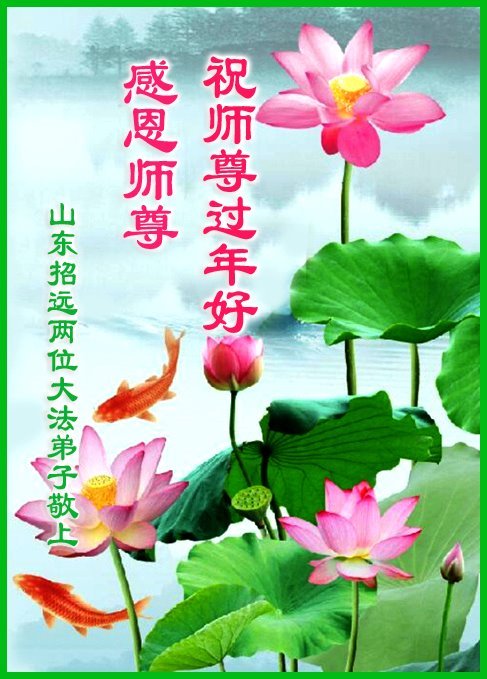 每逢佳节倍思亲!在新年即将到来之际,恭祝师尊新年快乐!弟子向师尊献上心中最诚挚的祝愿和感恩。弟子千言万语也道不尽对师尊的感恩,只有多学法,学好法,修好自己,做好三件事,精進实修,完成使命跟师父回家。 山东招远两位大法弟子敬上 山东省烟台市招远市一大法弟子恭祝师尊过年好!