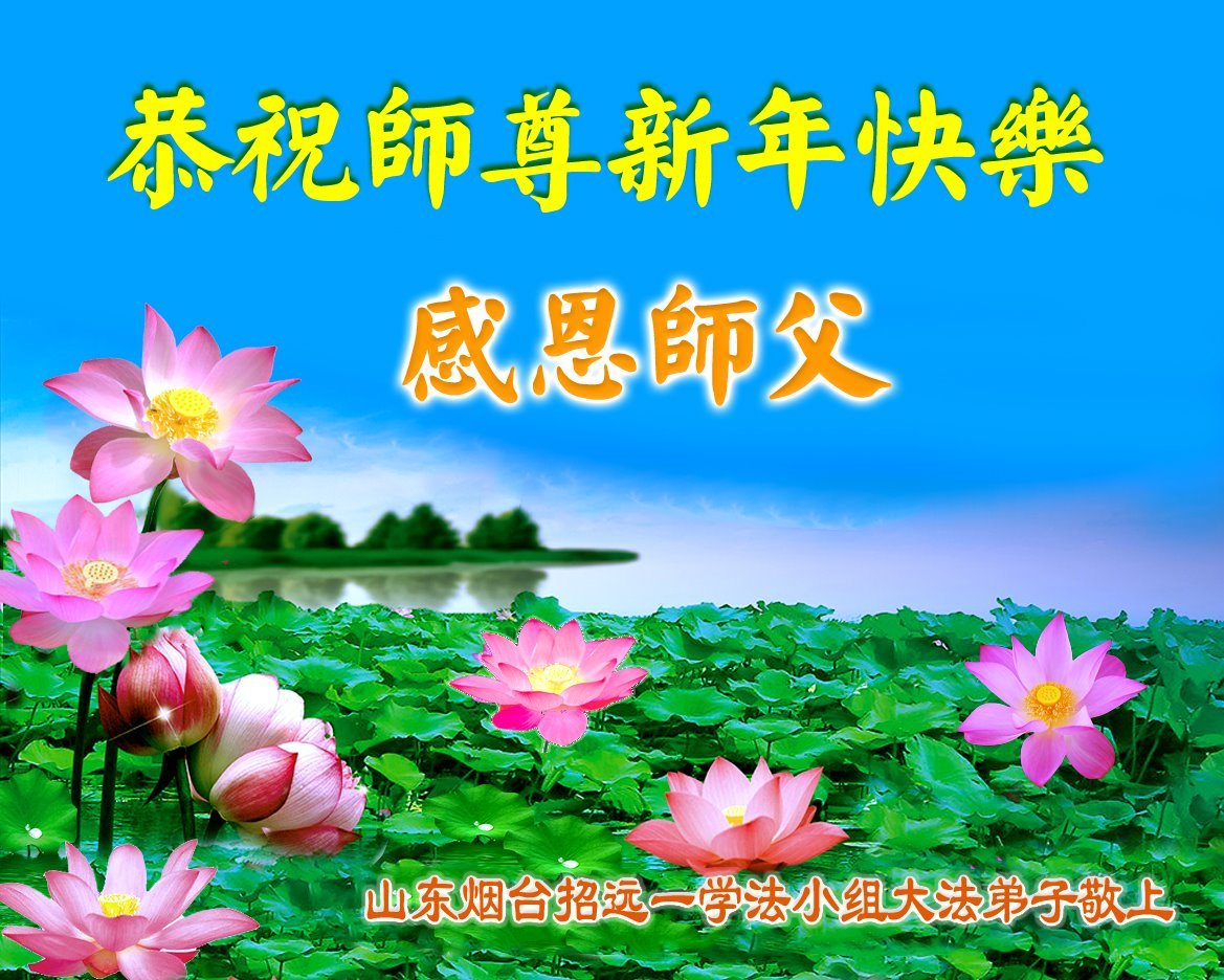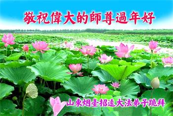 慈悲伟大的师尊您好!感谢您把我们从地狱捞起、洗净,引导弟子走向正法修炼之路,帮助弟子消去生生世世积累下的巨大业力,保护弟子战胜了各种邪恶的干扰。您为弟子承受了巨大的痛苦,弟子无比的内疚,师尊您辛苦了! 弟子唯有精進实修,坚定不移的护师护法,兑现誓约,跟师父回家。新年即将来到,弟子跪拜师尊,恭祝师尊过年好! 山东烟台招远大法弟子敬祝伟大的师尊过年好!