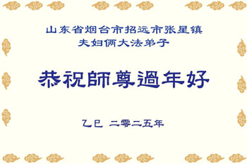 【明慧网二零二五年一月二十九日】 山东省烟台市招远市张星镇大法弟子恭祝慈悲伟大的师尊新年快乐!
