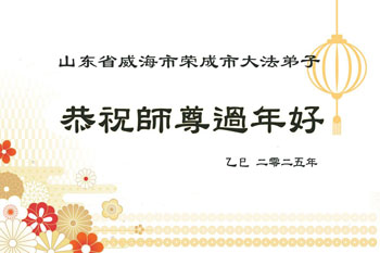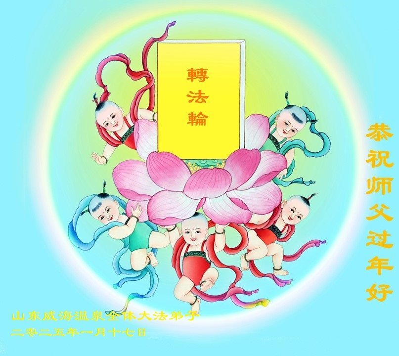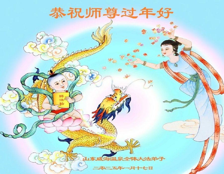 师恩浩荡!弟子千言万语也表达不尽对师父的无限感恩,唯有精進实修,努力做好三件事,早日跟师父回家。 山东威海温泉全体大法弟子恭祝师尊过年好!