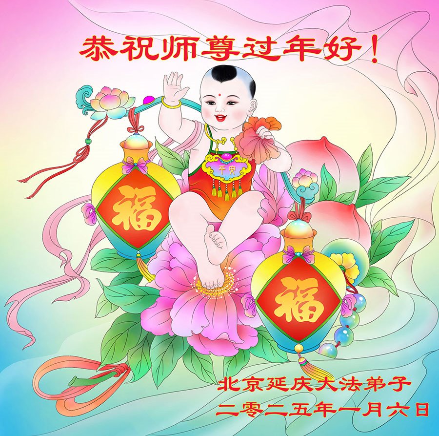 恭祝慈悲伟大的师父过年好!师尊新年快乐!弟子给师尊拜年了! 师父您辛苦了!感恩师尊慈悲救度! 法轮大法好,真善忍好! 北京海淀区老年大法弟子敬上 二零二五年一月十七日 北京丰台区一大法弟子给师父拜年了!恭祝师父新年好!