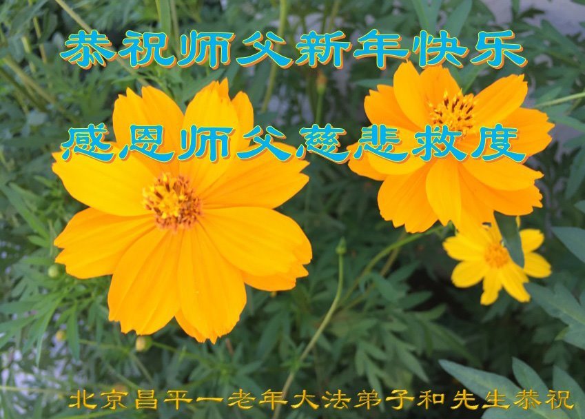 恭祝慈悲伟大的师父新年快乐! 感恩师尊的慈悲保护与救度!在新的一年里,我要精進实修,抓紧做好三件事,多救人。 法轮大法好!真善忍好!谢谢师父! 北京昌平区一老年大法弟子敬上 北京市顺义区三位老年大法弟子恭祝慈悲伟大的师父新年好!