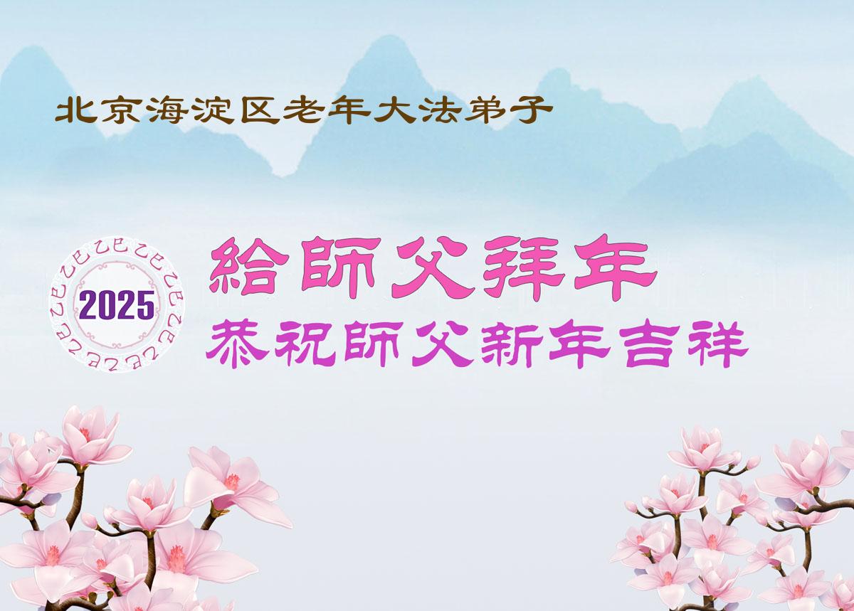 慈悲伟大的师父您好!弟子感恩师父的慈悲救度!我和先生给师父拜年:恭祝师父新年快乐!我要多学法、多救人、多发正念,做好三件事,圆满随师还。 北京昌平一老年大法弟子和先生敬上 2025年1月16日 北京海淀区老年大法弟子恭祝师尊过年好!