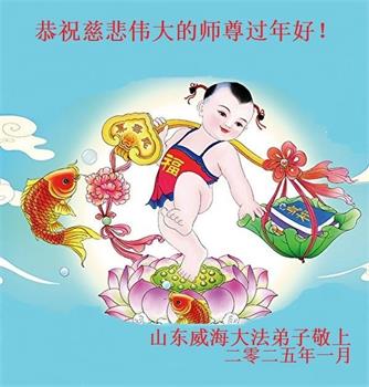 【明慧网二零二五年一月二十九日】 山东省烟台市牟平区一大法弟子的母亲和女儿恭祝师尊过年好!