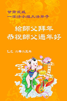 感恩师尊的成全以及一路慈悲保护!弟子全家要共同努力,做好三件事,精進不停。 甘肃武威一学法小组大法弟子恭祝师尊新年好!