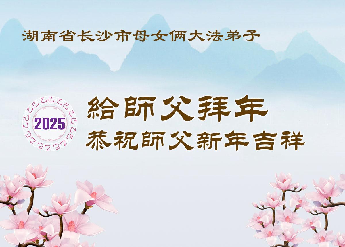 恭祝师尊新年快乐! 湖南省长沙市一学法小组全体大法弟子敬上 二零二五年一月九日 湖南省长沙市母女俩大法弟子恭祝师尊新年快乐!
