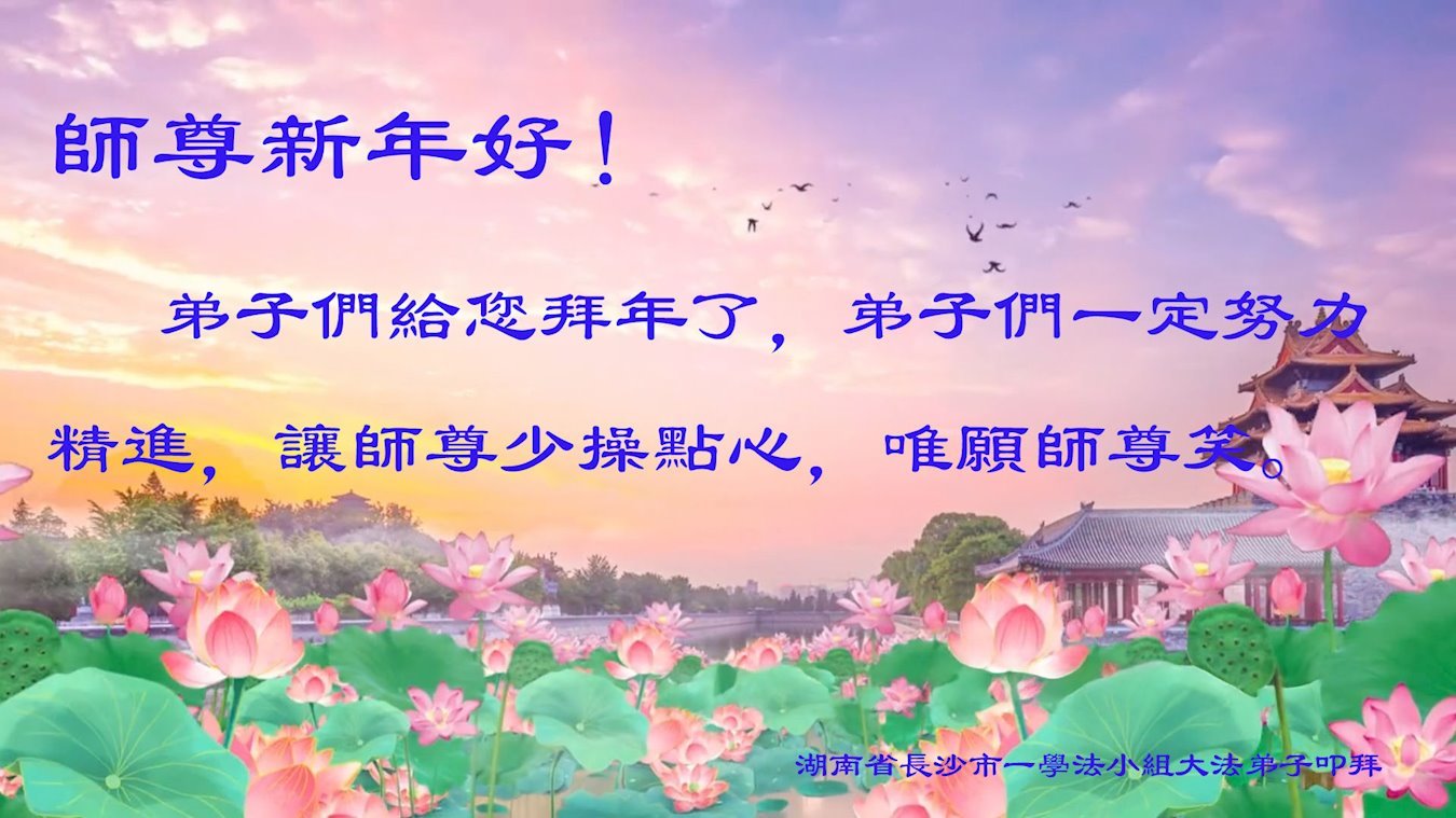 恭祝师尊新年好! 湖南长沙一学法小组大法弟子敬上 湖南省长沙市一学法小组全体大法弟子恭祝师尊新年快乐!