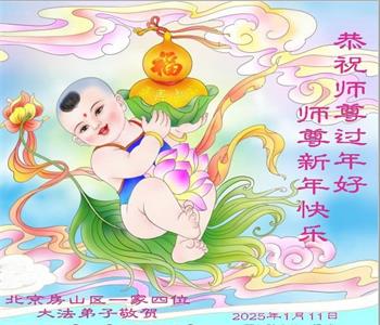 恭祝师尊新年快乐! 谢谢师父的慈悲苦度。新的一年,弟子一定不辜负师父的慈悲救度,弟子们会精進、精進、再精進,做好大法弟子该做的三件事,坚信师父、坚信大法,实修自己,学好法,多救人,兑现誓约,跟师父回家。 北京市密云山区一大法弟子及家属敬上 二零二五年一月十九日 北京房山区大法弟子恭祝师父过年好!师父您辛苦了!